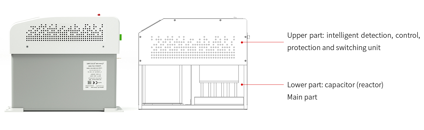 Intelligent capacitor adopts upper and lower separated structure, and the main circuit components and control circuit are completely isolated from each other. The layered design effectively improves the efficiency of heat dissipation, and realizes the quick assembly, disassembly, maintenance and repair of the product, which transforms the traditional bulky and heavy structure of reactive power compensation equippment.