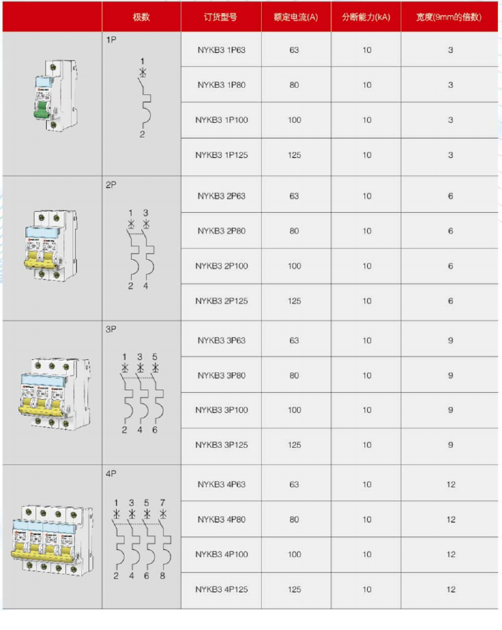 - 我们在 NYKB 系列小型断路器产品上使用了多种颜色手柄,给施工安装带来更为便利的识别,也为日后的维护改造及非专业人士的操作提供了方便。